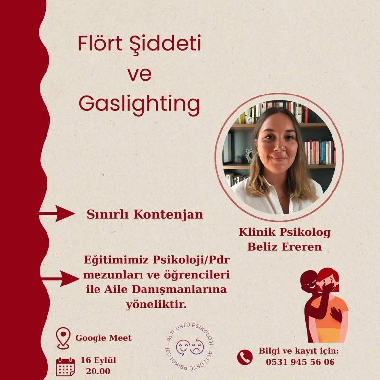 Uzman Psikolog Beliz Ereren ile 16.09.2025 tarihinde Meet üzerinden ”Flört Şiddeti ve Gaslighting” adlı eğitimi gerçekleştirdik. ☀️ Eğitimde emeği geçenler: Bengisu Baloğlu